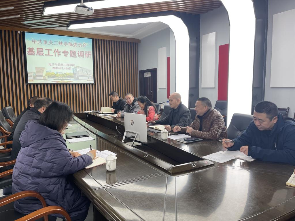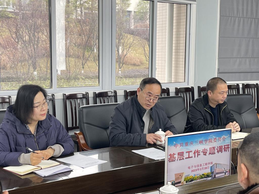 2023年2月28日上午,学校党委书记李廷勇到我院开展第四次党代会基层工作专题调研,学校党政办公室主任黄宇、党委组织部部长谢昆随同调研。