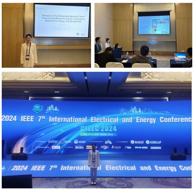 我院2022级硕士研究生商冰洁参加大会,并做了题为“Research on The Relationship Between New Energy Vehicles and Renewable Energy Consumption and Carbon Emissions Based on Big Data”的英文报告。该报告是市级研究生创新项目的研究成果。报告通过对近十年全球电力、能源、电动汽车碳排放等大数据的分析,揭示了电动汽车发展趋势与新能源消纳、碳排放之间有机联系和内在逻辑关系。该报告获得与会专家学者的肯定和热议。