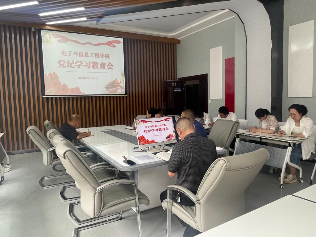 5月20日下午,电信学院在慎楼1栋232召开党纪学习教育专题会,持续深入开展党纪学习教育,学院领导班子、科级干部、全体辅导员参会,会议由欧岚书记主持。