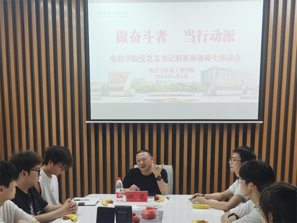 为深入贯彻学院“1233”人才培养思路,认真落实党政班子成员联系班级制度,扎实推进学院学生学风建设,引导学生健康成长和发展。2024年6月6日下午,我院党总支书记欧岚与对接联系的21级电气2班全体同学,在慎思1栋232召开了以“做奋斗者 当行动派”为主题的师生座谈会。年级辅导员康泽老师参加了会议。