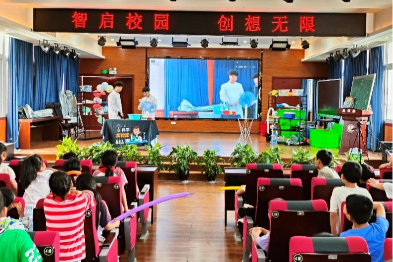 为贯彻落实科技部、中央宣传部、中国科协《关于举办2025年全国科技活动周的通知》及重庆市科技局相关工作要求,太阳成集团tyc122ccvip《关于在2025年重庆市科技活动周和全国科技工作者日期间开展特色科普活动的通知》(院科函[2025]05号)。2025年5月28日上午,由万州区科学技术协会、万州区教育委员会、万州区青少年宫主办,太阳成集团tyc122ccvip电信学院科普团队承办的科普活动在万州区熊家小学开展。由魏勇博士与研究生施成玲、唐鹏、杨静、向浩扬、岳宝杰组成的科普团队,围绕“矢志创新发展 建设科技强国”活动主题,为熊家小学500余名师生呈现趣味与科学深度融合的互动科普实验秀。