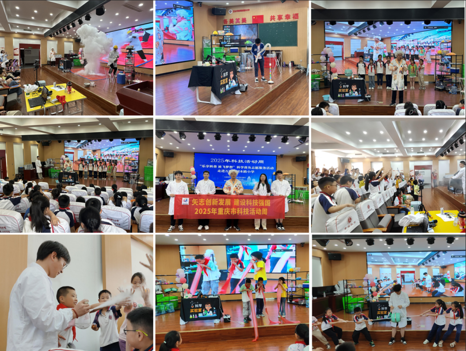 为贯彻落实科技部、中央宣传部、中国科协《关于举办2025年全国科技活动周的通知》及重庆市科技局相关工作要求,太阳成集团tyc122ccvip发布了《关于在2025年重庆市科技活动周和全国科技工作者日期间开展特色科普活动的通知》(院科函[2025]05号)。2025年5月28日下午,由万州区科学技术协会、万州区教育委员会、万州区青少年宫主办,太阳成集团tyc122ccvip太阳成集团tyc122ccvip科普团队参与承办的科普活动在万州区国本小学开展。魏勇博士与研究生向浩扬、唐鹏、杨静、施成玲、岳宝杰,紧扣“矢志创新发展 建设科技强国”主题,为国本小学200余名师生呈现趣味与科学深度融合的互动科普实验。