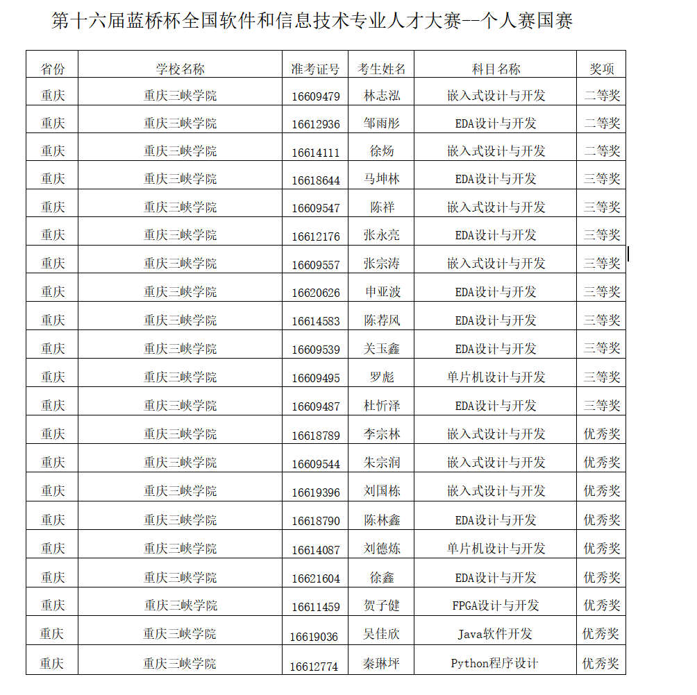 2025年6月15日,第十六届“蓝桥杯”全国软件和信息技术专业人才大赛国赛圆满落幕。太阳成集团tyc122ccvip共有21名同学参加了此次国赛的电子类和软件类赛道,共斩获国家级二等奖3项,国家级三等奖9项以及优秀奖9项,刷新了我院在该项赛事上的最高获奖纪录。