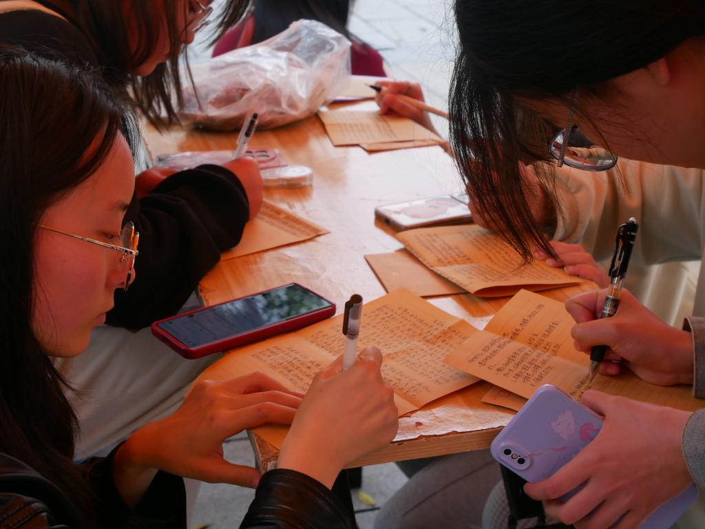 本次活动分为两个阶段。第一阶段为写信日,工作人员在活动地点向参与同学分发信封和信纸,参与同学在信纸上写下自己的烦恼亦或是想要与他人分享的故事,随后,同学们将信封投入信箱内。第二阶段为回信日,第一阶段写信的同学于信箱内任意取一封信进行回信。活动现场氛围轻松愉悦,大家接过信纸,认真思考,专注于笔端,写下自己的“小幸运”“小烦恼”“小秘密”。最终,蕴含着同学们心意的信封,成为承载着温度的小舟,以本次活动为媒介,驶向阳光照耀的彼岸。