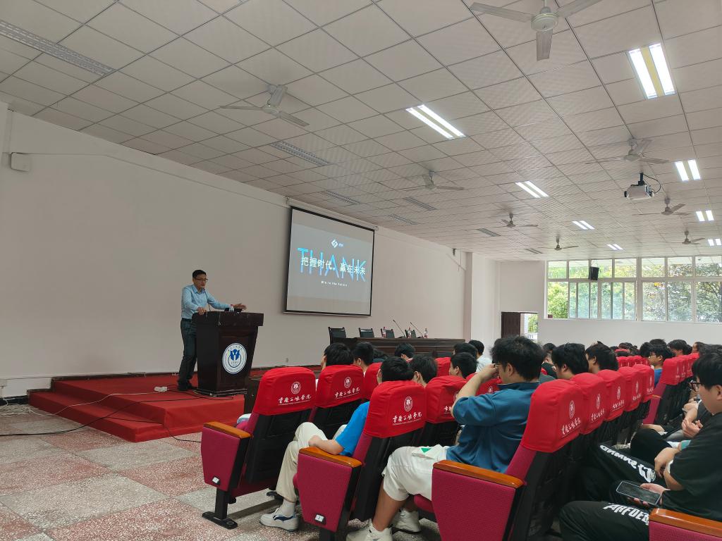 邓经理首先从专业入手,对电子信息工程、通信工程、智能科学与技术等专业进行详细的专业分析,结合当前中国的发展,未来的就业前景等方面突出讲解了几个专业的未来发展趋势。随后邓经理结合同学们的专业详细分析了AI推动下新一代信息技术发展的内容,针对不同的专业向同学们介绍了未来可从事的职业方向,以及相关领域的技术需求等。邓经理强调在实践过程中,需要在观念上对旧知识、旧经验进行有效的改造和创新,对其进行重新的融合,进一步体现出其价值。最后经理对同学们提出的问题进行了一一解答,鼓励同学们把握时代,赢在未来。