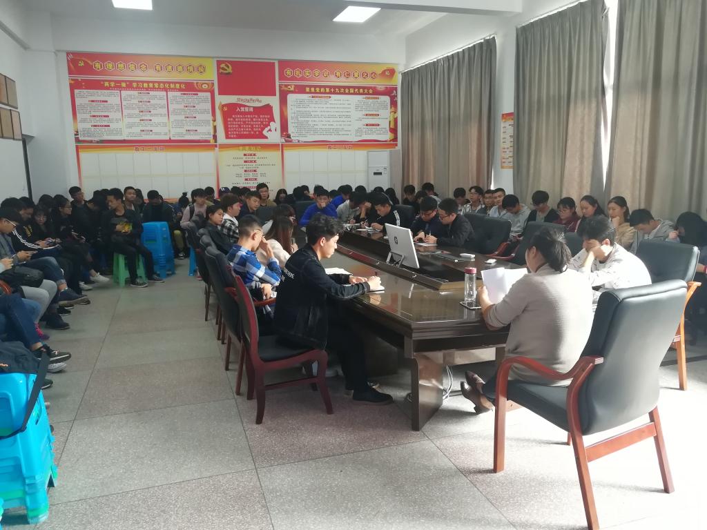 为深入学习贯彻党的十九大精神、习近平新时代中国特色社会主义思想,全面提高入党积极分子、发展对象的思想政治素质,强化思想入党,为当代大学生树立坚定的理想信念奠定坚实的思想基石,10月29日中午1点,我院75名第72期积极分子和7名第2期发展对象在慎思楼1栋232会议室进行党课学习,由太阳成集团tyc122ccvip党总支组织委员向红老师主讲。