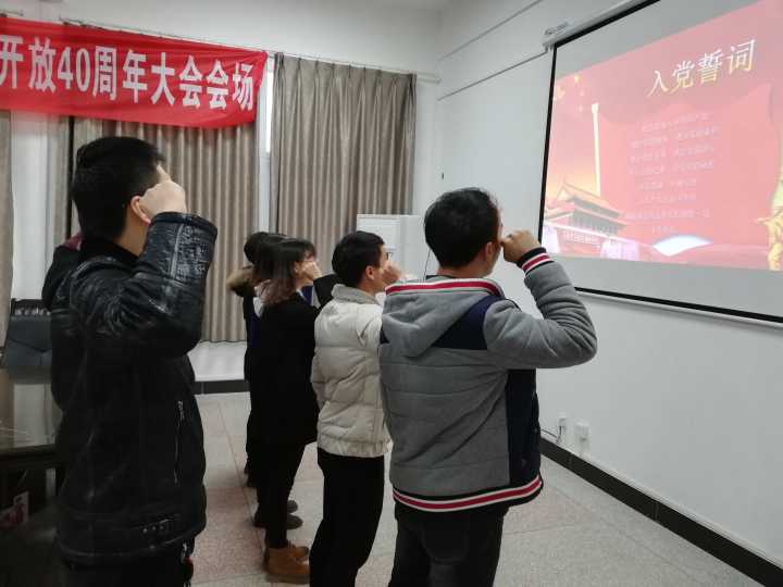 2018年12月19日中午12点整,我院学生党支部于慎思楼1栋232会议室举行新党员入党宣誓仪式。参加宣誓仪式的有支部书记韩素斌老师,支部委员余浩、张金山以及全体新党员。