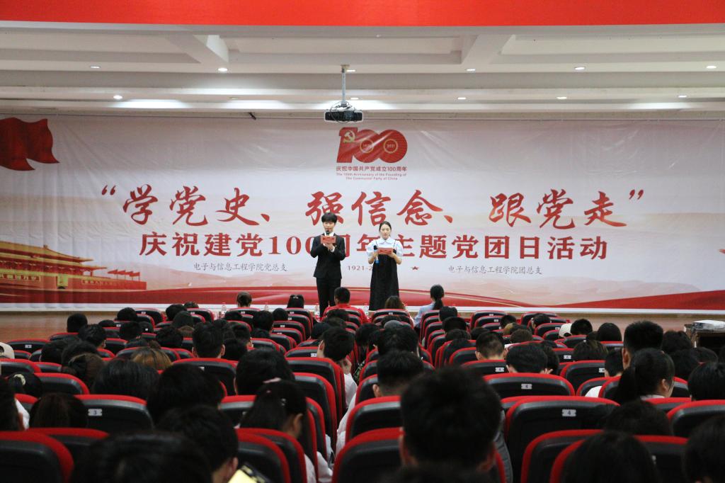 本次活动共分为微视频献礼、党史讲述、党史朗诵、唱响革命歌曲、党史知识答题五个环节。在《亲爱的党我想对您说》微视频中,学生党员同志们在党的生日来临之际表达出对党最真诚的祝福;在党史讲述环节,通过讲述《一艘红船忆初心,革命精神永铭记》、《红岩中的革命故事》两个党史故事,以浙江嘉兴南湖游船、与重庆红岩中的人物为切入点深入讲述了老一辈革命家用热血与生命锤造成的“坚定理想、百折不挠”的红船精神与“爱国、奋斗、团结、奉献”的红岩精神;在党史朗诵环节,通过朗诵《党旗颂》与《永远跟党走》,表达出青年团员们心中对的党的那份热爱与坚定的信念;在唱响革命歌曲环节,各团支部通过唱响《没有共产党就没有新中国》等多首耳熟能详的革命歌曲,用最美之声,青春之志、爱国之情积极向党献礼;通过党史知识答题也进一步加强党史学习。最终通过比拼,2019级智能科学与技术团支部获得一等奖,2019级通信工程3班和2019级电子信息工程3班2个团支部获得二等奖,2020级电气工程及其自动化2班、2020级智能科学与技术和2019级通信工程3班3个团支部获得三等奖。