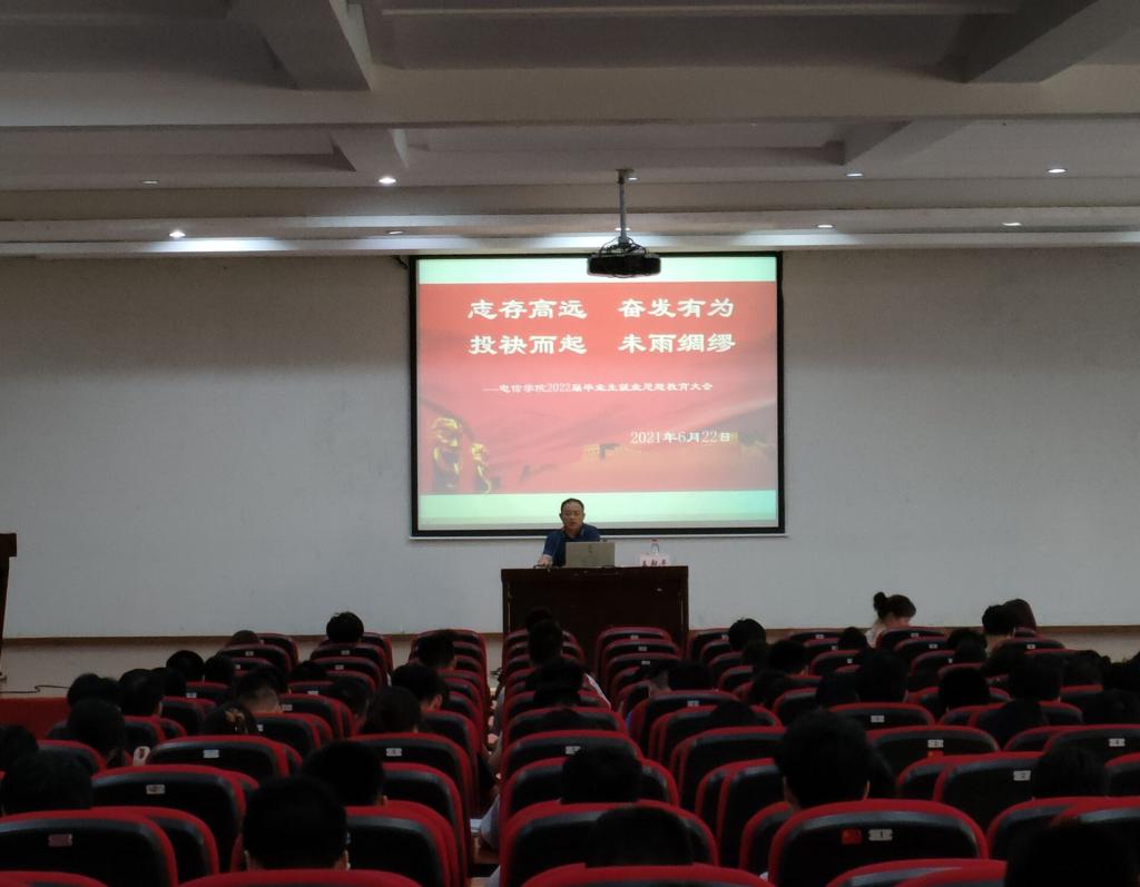 首先,王书记告诉同学们要认清形式,调整心态。不能片面追求“三优”、要求专业对口、强调单位性质。接着,王书记建议同学们确定目标,认真准备。拒绝从众跟风,要在就业实习之前提前准备好相关材料,认真做好生涯规划,趁早确定自己的理想职业并为之奋斗,告诫同学们要主动择业,积极就业。实习的主要目的是累积工作经验,提升职业能力,增强市场竞争力,进而提升自己的价值。然后,王书记告诉同学们要遵纪守法,安全就业,预防网络诈骗、传销、网贷等,一定要选择正规渠道入职工作,不可盲目信任公司营销人员,提醒同学们一定要留心毕业前后的相关事宜,例如论文、学分等。他还特别强调要遵守单位纪律,维护学校形象;要踏实肯干,快速适应职场等。最后王书记对同学们表示真诚的期望与祝愿,他希望同学们都顺利毕业、愉快上岗。