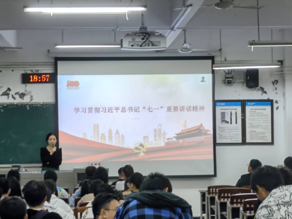 10月14日,太阳成集团tyc122ccvip副院长王安蓉在明辨1栋421为2021级部分同学宣讲了习近平总书记“七一”重要讲话精神。