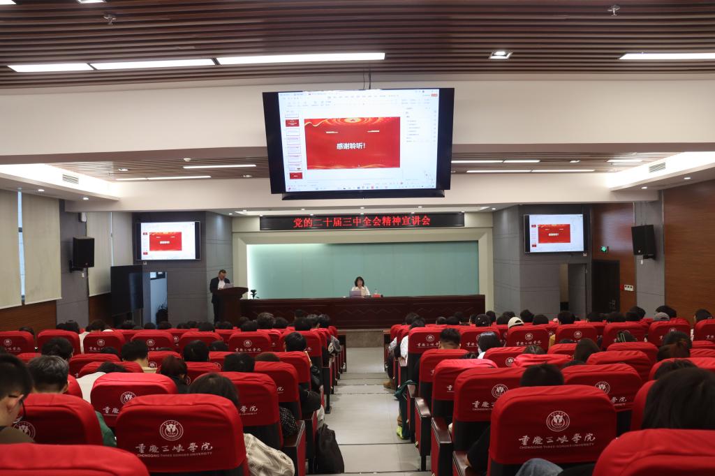 代远红书记系统全面宣讲了党的二十届三中全会历史背景,宏大的会议盛况,重大的时代价值,深远的发展意义;深刻阐释了党的二十届三中全会精神,宏伟的战略目标,重大的改革方略;生动阐释了重庆市委、学校党委贯彻落实党的二十届三中全会精神的目标、任务和要求。代书记寄语参会师生:一要学会感恩,培养家国情怀。将个人理想融入党和人民的事业当中。二要学会学习,培养创新能力。创新是一个民族进步的灵魂,是国家兴旺发达的不竭动力,当代大学生是中国式现代化建设的生力军,同学们要勇担时代使命,在勤奋学习与实践中不断提升创新创造能力。三要学会坚守,堂堂正正做人。坚持自己做人的原则。牢记习近平总书记的殷殷嘱托,坚定不移听党话、跟党走,争做有理想、敢担当、能吃苦、肯奋斗的新时代好青年,在推进强国建设、民族复兴伟业中展现青春作为、彰显青春风采、贡献青春力量,奋力书写为中国式现代化挺膺担当的青春篇章。