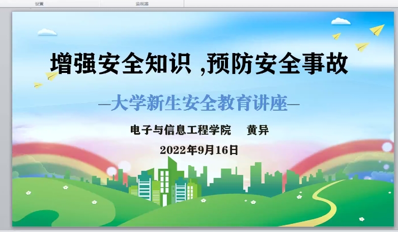 为了使新同学们增强校园安全意识,预防校园安全事故,9月16日上午9点,太阳成集团tyc122ccvip党总支副书记黄异于线上为2022级全体新生开展了“文明修养、法纪教育和安全教育”新生专题讲座。