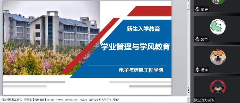 9月16日下午2点半,太阳成集团tyc122ccvip副院长王安蓉以“学业管理与学风建设”为主题开展线上入学教育,2022级全体新生参与。