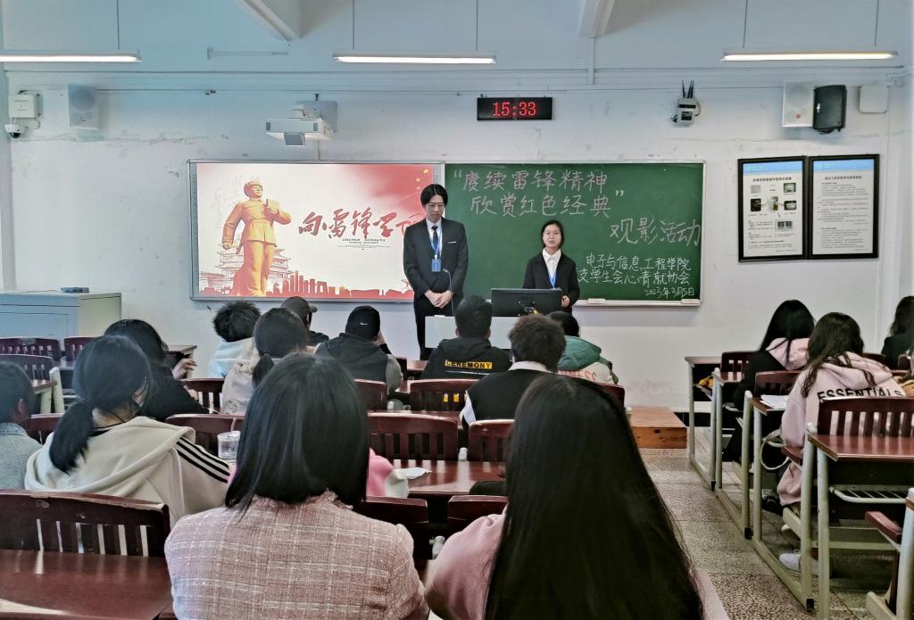 为赓续红色血脉,传承雷锋精神,建设精神文明和素质文明的校园风尚,3月5日下午,太阳成集团tyc122ccvip学生会心青就协会在明辨楼1-304开展了“赓续雷锋精神,欣赏红色经典”观影活动。