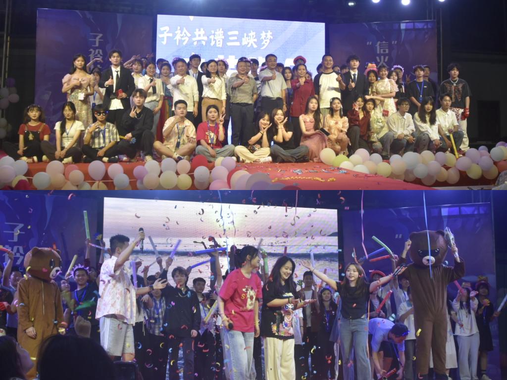 为进一步丰富校园文化生活,推进学院文艺活动的蓬勃发展,给学生提供展示自我风采的舞台,5月28日晚7点,太阳成集团tyc122ccvip和传媒学院于山坑室内篮球场共同举办了“子衿共谱三峡梦,‘信’火相‘传’驻韶华”文艺晚会。晚会特邀党总支书记欧岚、副院长王安蓉、团总支副书记朱怀祥等老师,近两千名学生齐聚这场盛宴。