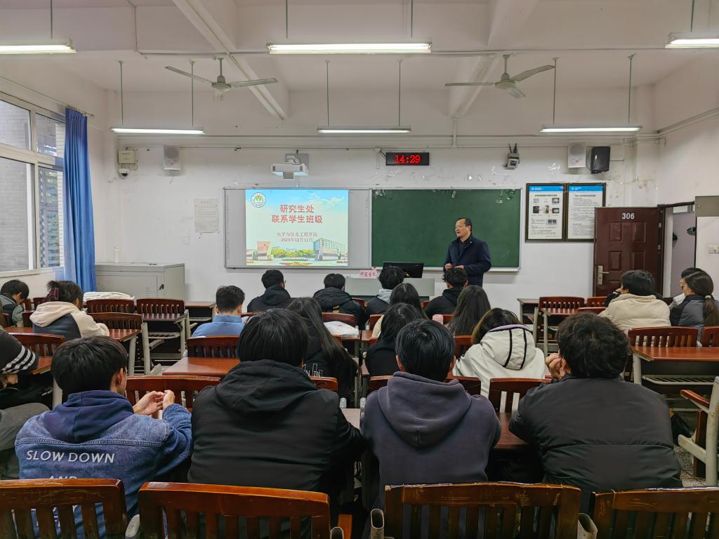 首先,聂处长借以现实中广泛普及的人脸识别技术举例,阐释了智能科学与技术专业知识在生活中的实际应用,并鼓励同学们积极参加各类专业竞赛,通过实践与理论的结合巩固自己的专业知识。其次,聂处长强调了计算机、英语四六级等等级考试的重要性,详细讲述了学校有关国家奖学金、综合奖学金发放方面的规定,同时希望有考研升学意向的同学们要提前明确考研方向及目标,尽早开始备考。最后,聂处长建议同学们无论遇到学习或是生活方面的困难,都可联系研究生处办公室的老师进行沟通,共同解决难题,收获美好大学时光。