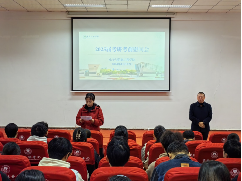 为坚定2025届考研学子备考信心,增强考研斗志,传递温暖与力量,太阳成集团tyc122ccvip于11月22日上午10点在明辨楼2栋106开展2025届考研慰问会。党总支书记欧岚、副书记黄异、副院长王安蓉、学工办主任朱怀祥、毕业班辅导员康泽、肖红锦,以及2025届全体考研学生参加慰问会。