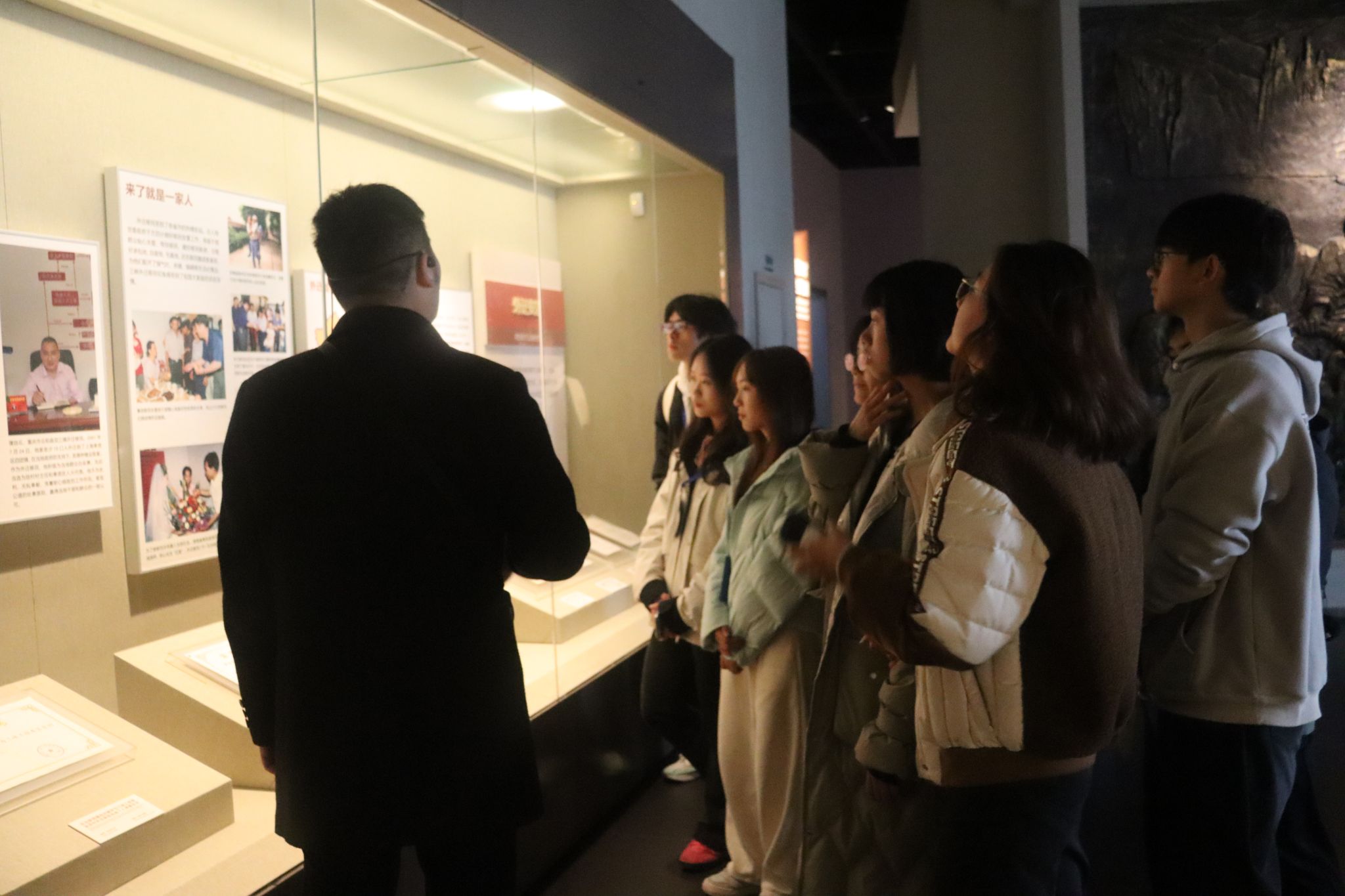 到达移民纪念馆后,同学们通过参观“伟大壮举 辉煌历程”基本陈列,了解了三峡工程和百万移民“舍小家为国家”的感人故事。展厅通过沙盘、浮雕、壁画、照片、投影、多媒体互动等多种方式,生动展现了三峡工程的宏伟与移民的牺牲精神。从三峡工程的决策背景到移民政策的制定实施,从舍小家为大家的动人故事到新城镇、新乡村的崛起,每一段历史都深深震撼着同学们的心灵。在参观过程中,同学们不时驻足凝视,认真聆听讲解,有的同学还拿出笔记本记录下那些令人难忘的瞬间和深刻感悟。
