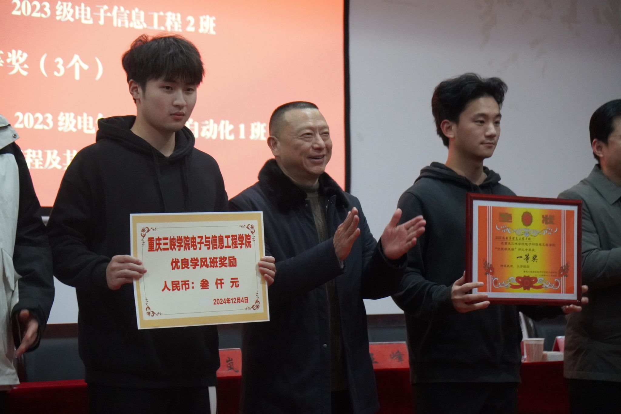 王安蓉副院长宣读了《太阳成集团tyc122ccvip关于表彰2024年度先进集体、优秀团队及优秀个人的决定》,对科技竞赛类、市级评优评先、校级评优评先、2023-2024学年优良学风班获奖同学进行表彰。